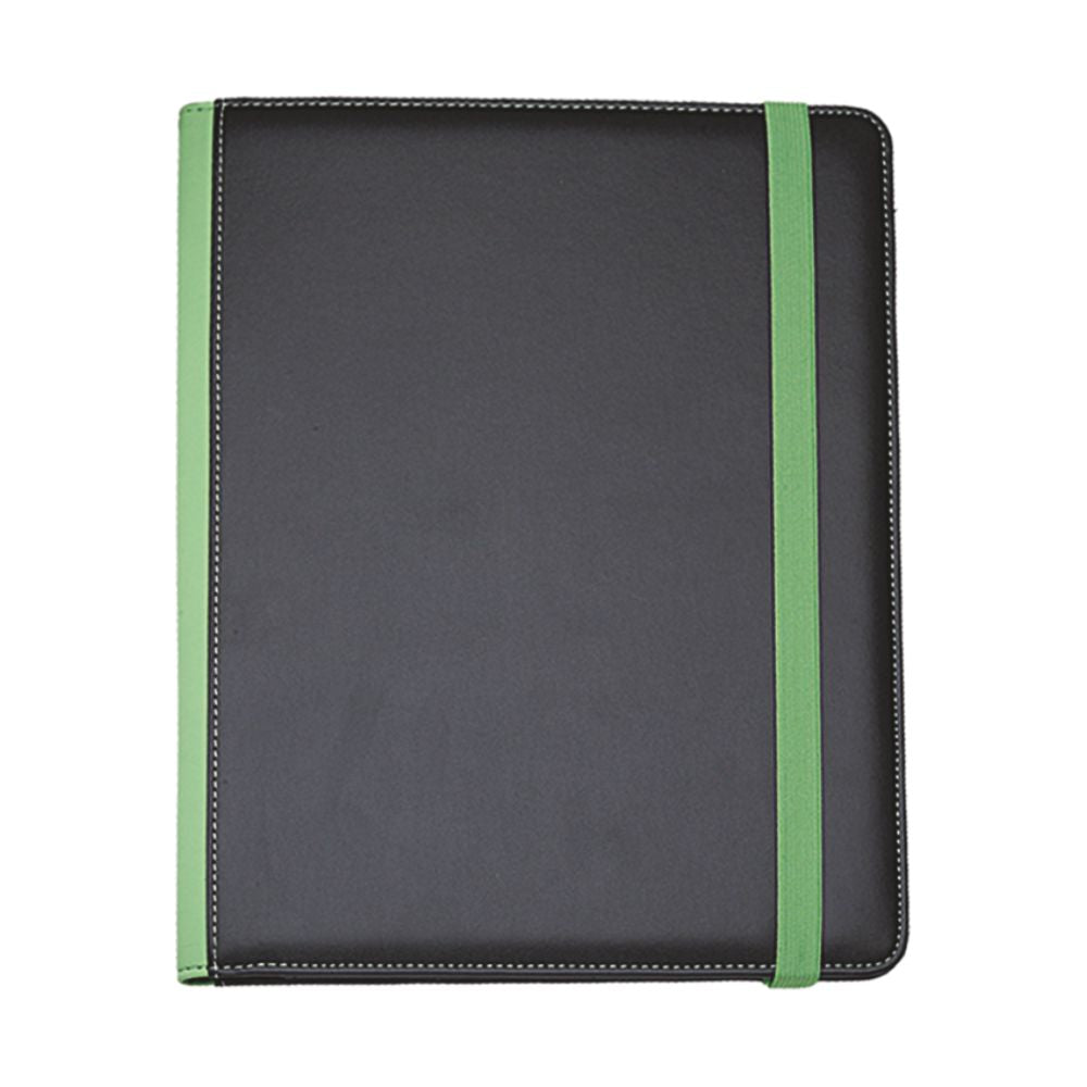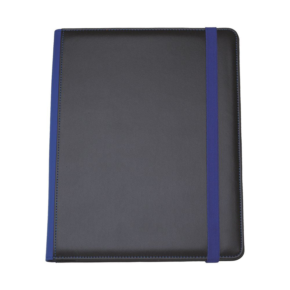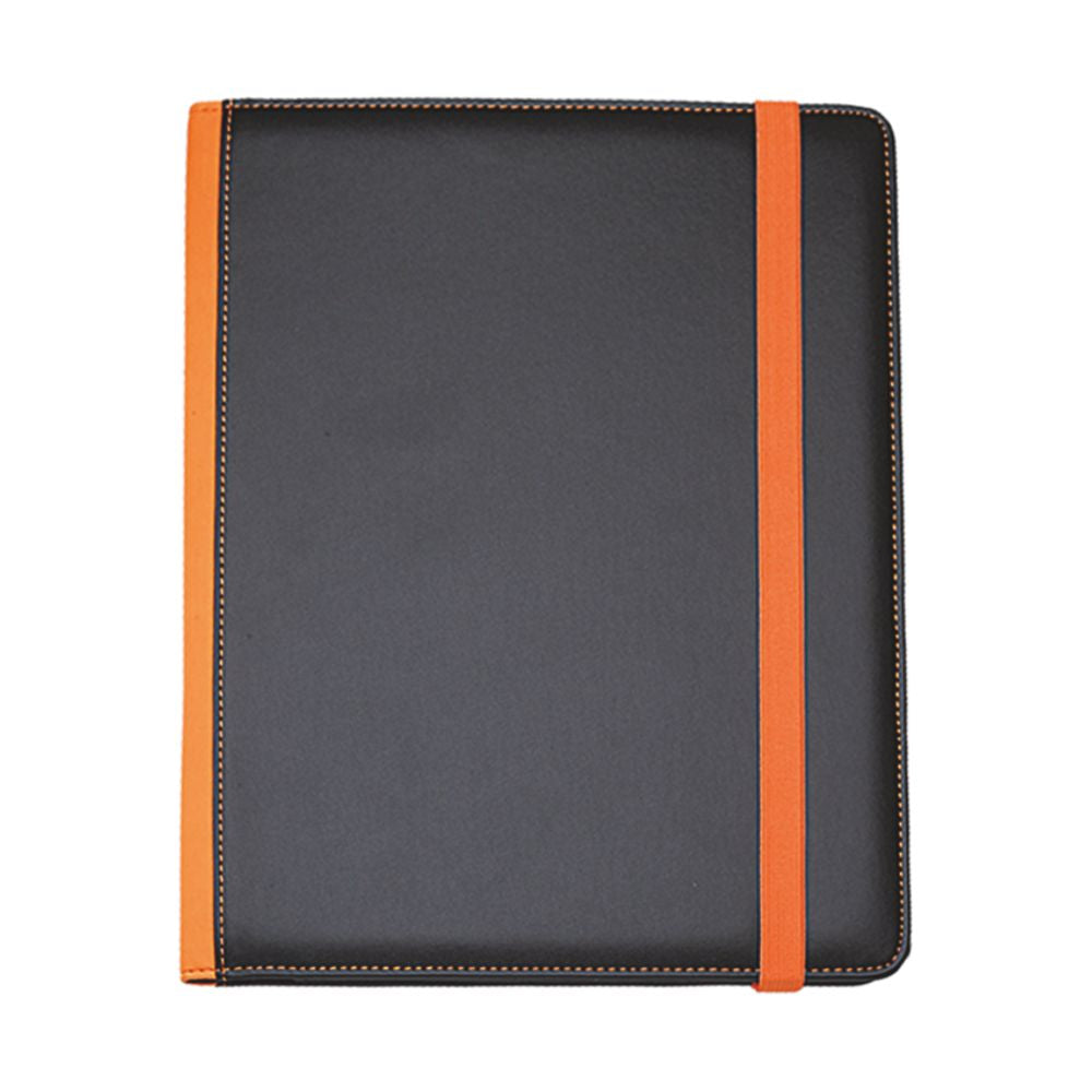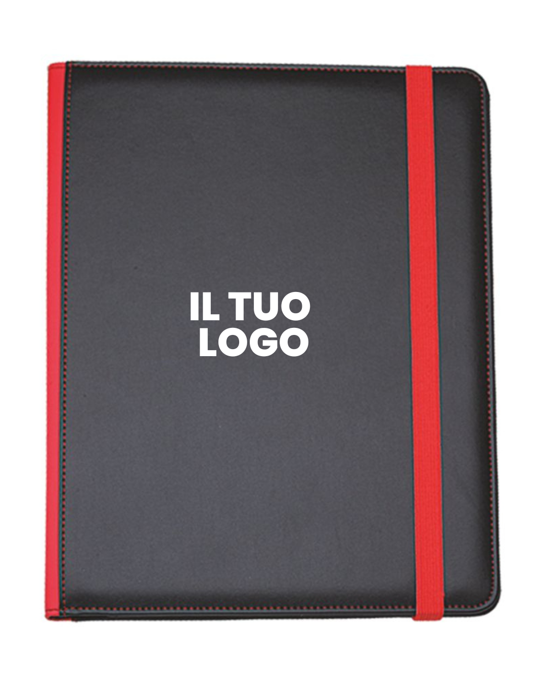 Cartella congresso in similpelle con elastico colorato. Varie tasche porta documenti, porta card. Vano porta penna. Completa di blocco.