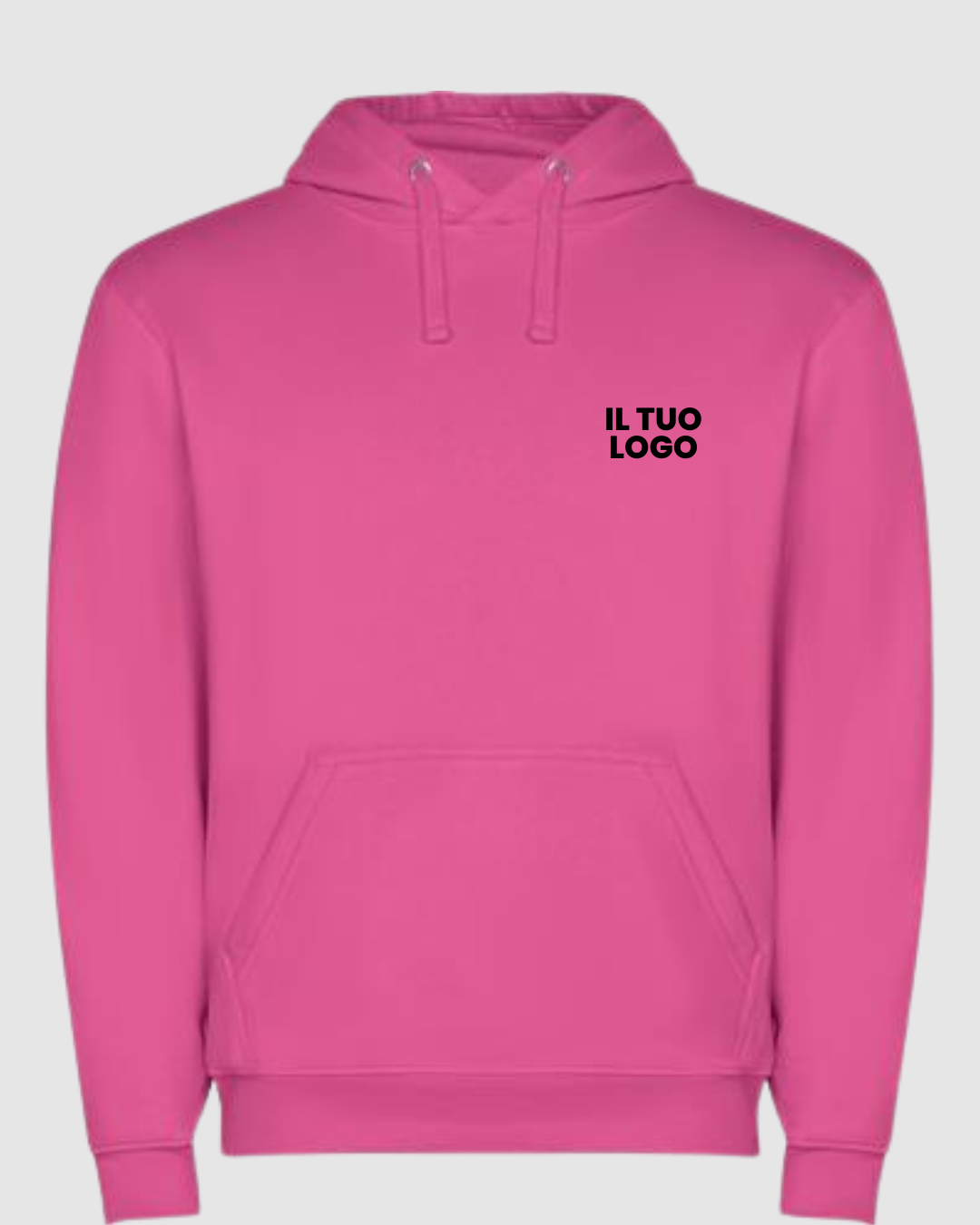 Felpa con cappuccio regolabile. Tasche a marsupio. Collo, polsini e girovita in costina 1x1. Modello bambino senza cordone.
