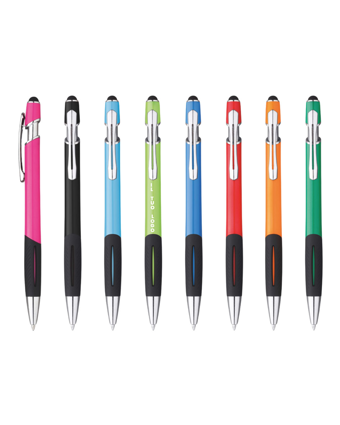 Penna Sfera con touch in plastica con clip in metallo. Refill nero. Dimensioni: cm 14,5.