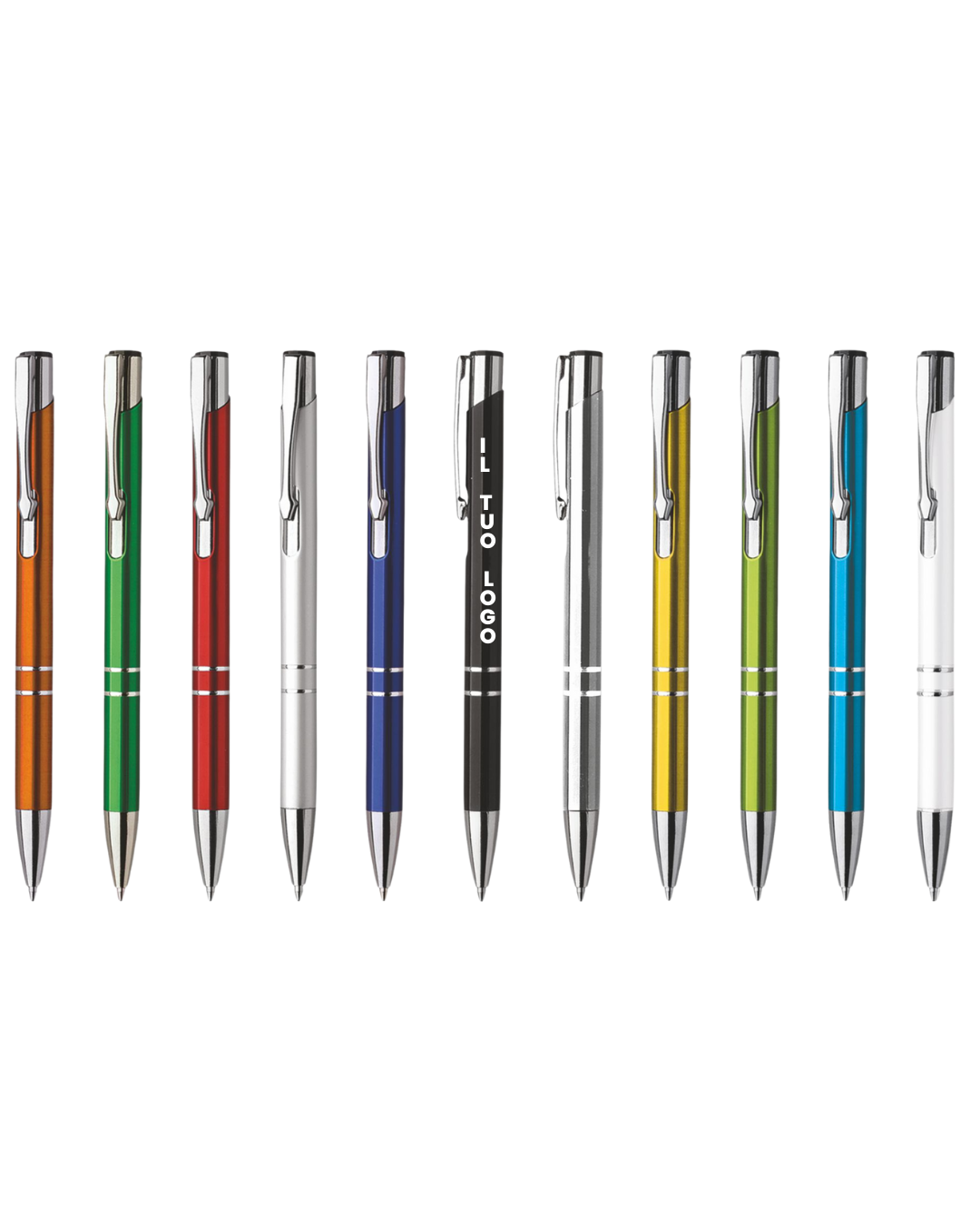 Penna sfera a scatto in alluminio, clip in metallo. Refill nero.