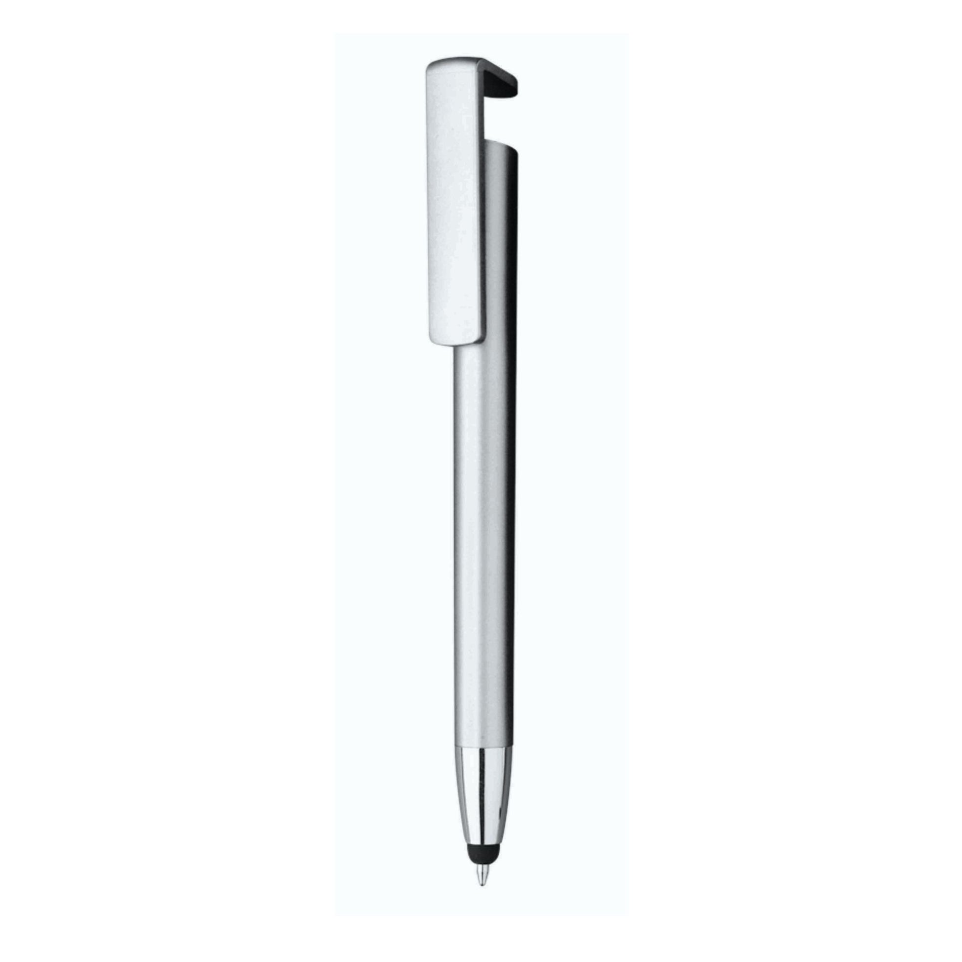 Penna sfera a scatto touch in plastica. Clip funzionalità supporto cellulare.