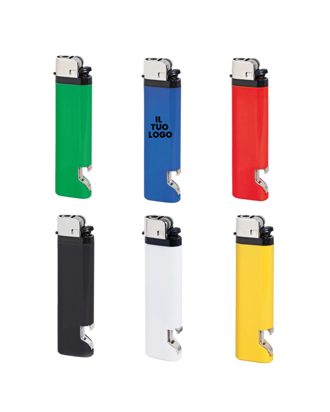 Accendino apribottiglie, pietra focaia. Plastica. Dimensioni: cm 2,4x9x0,9